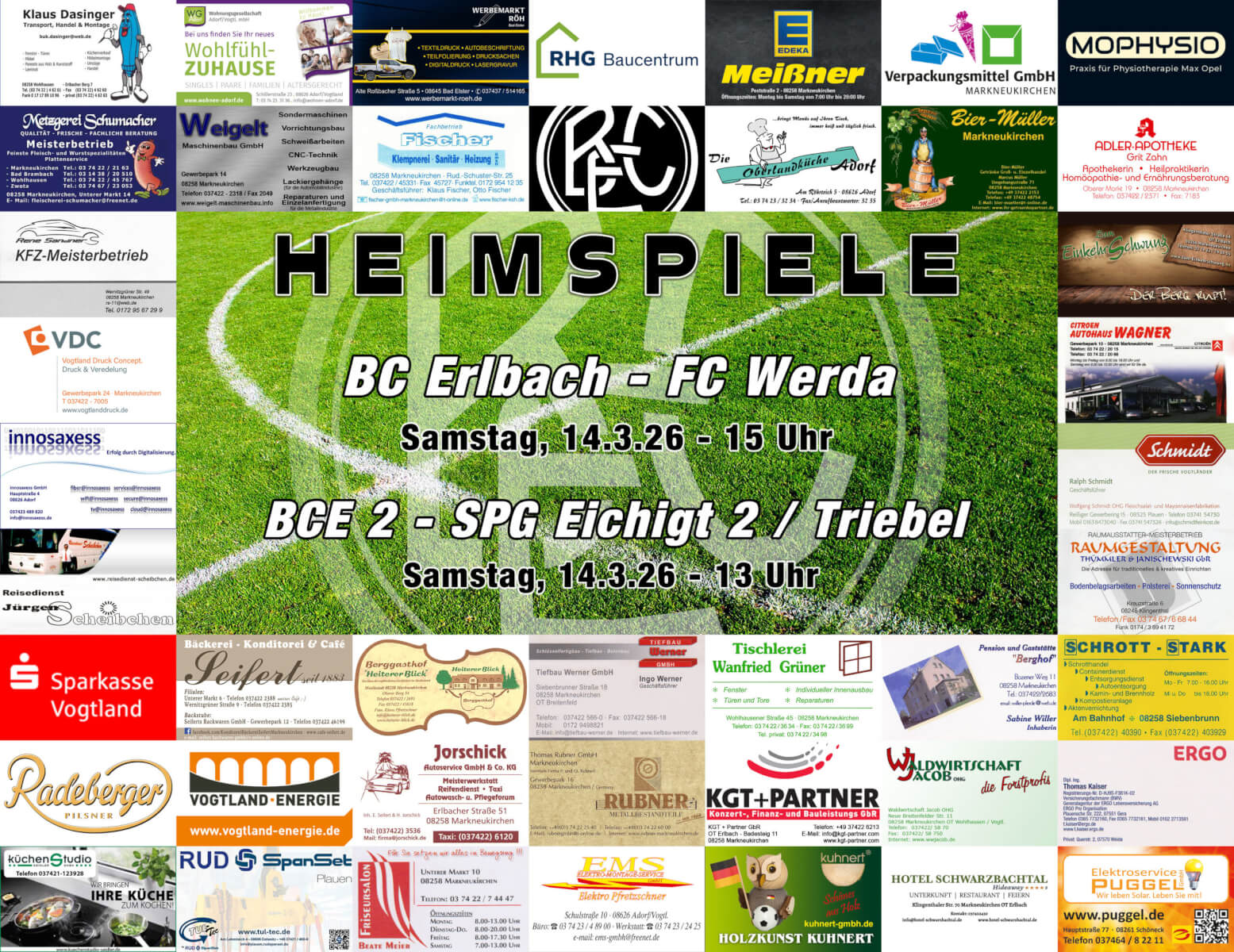 C: SpG Erlbach/Schöneck – FSV 1990 Klingenthal (9er), Sonntag 15.03. um 10 Uhr (in Schöneck)